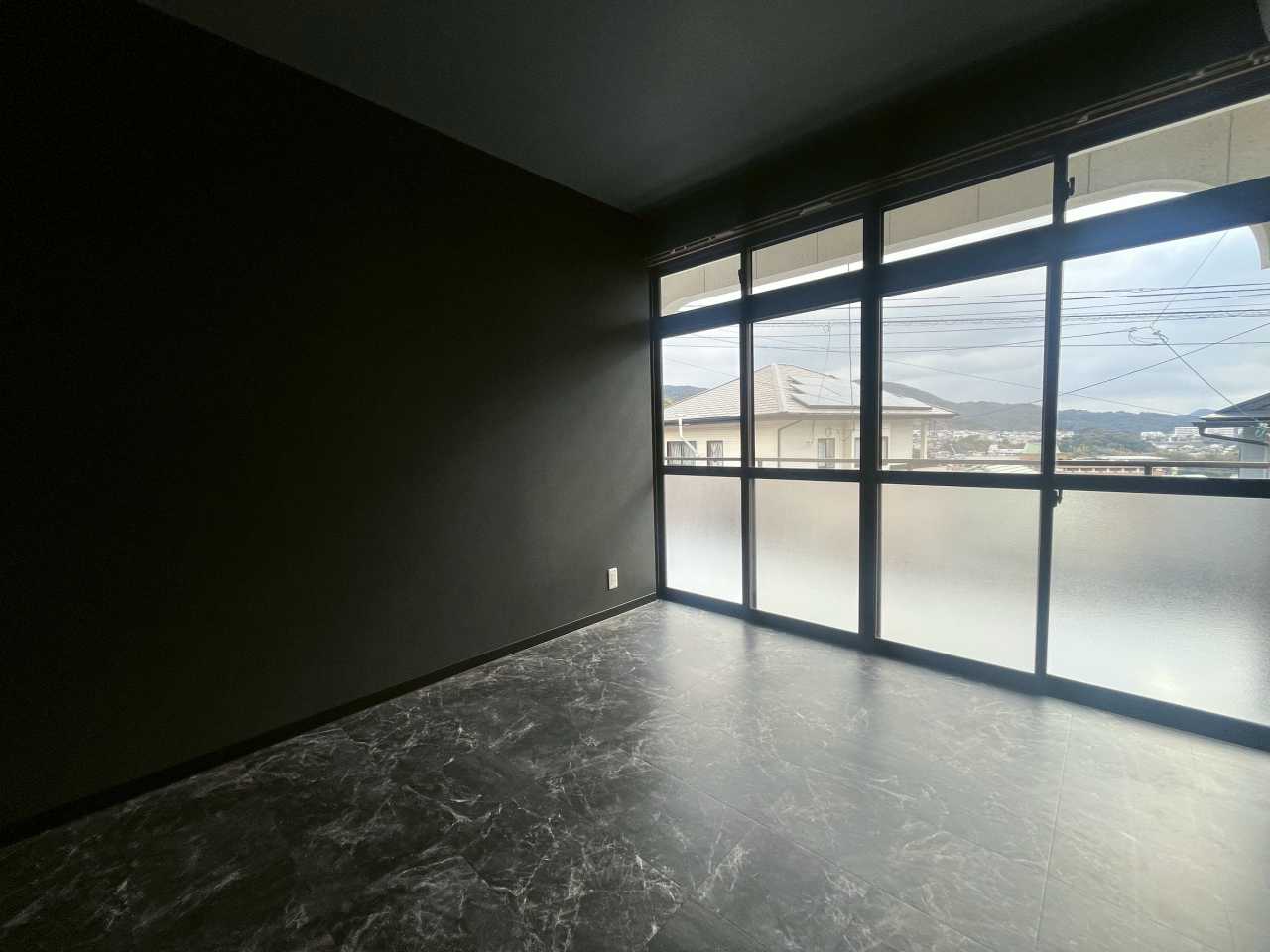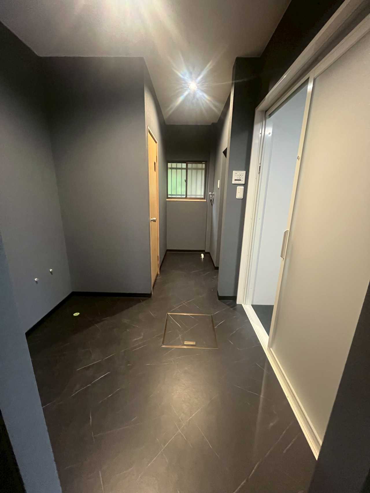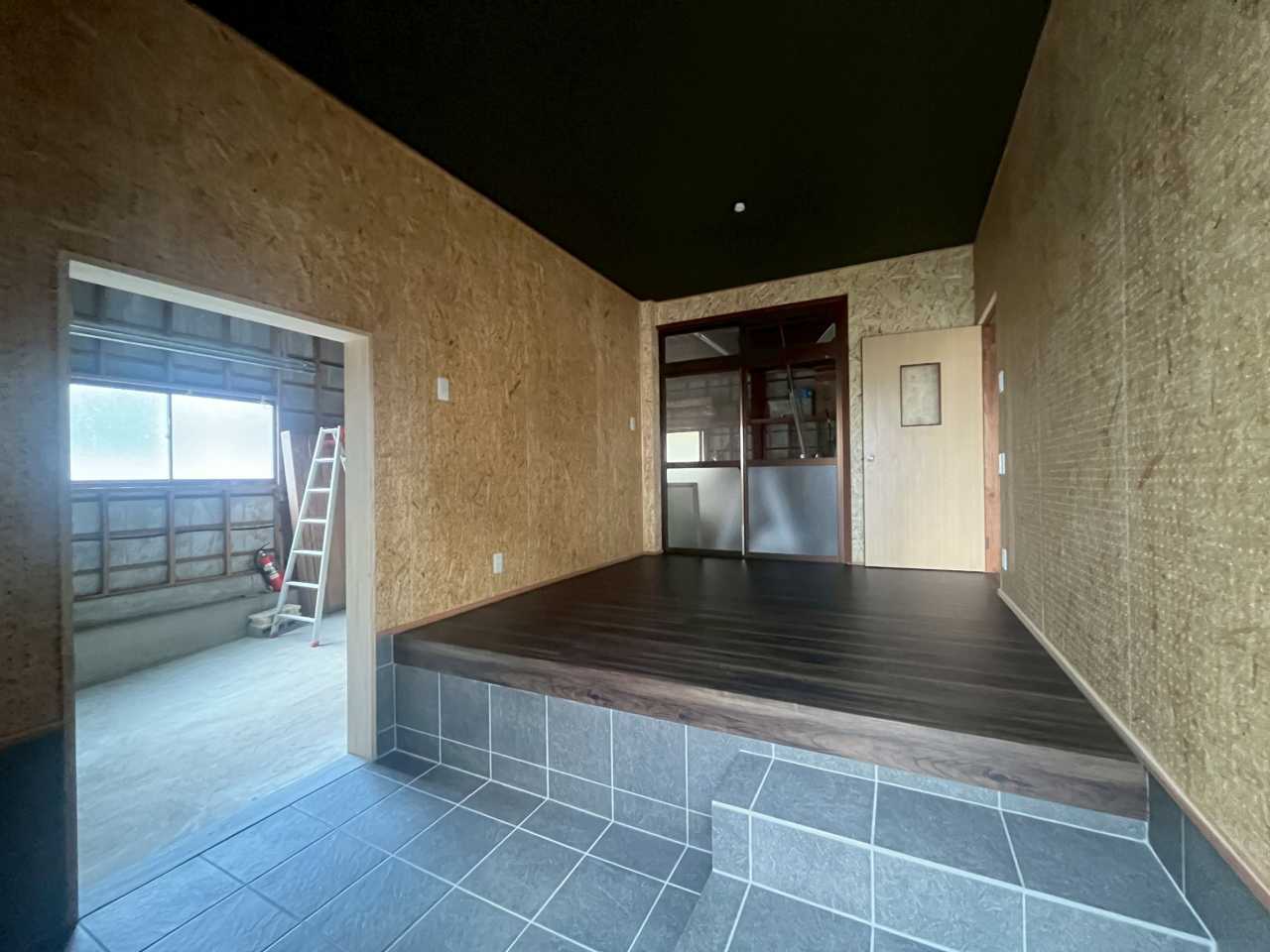 ブラックを基調とした天井、階段。壁はOSBボードで好きな物をディスプレイでき、男のロマンある室内空間になりました。ガレージから室内移動も簡単にできるようになりました。